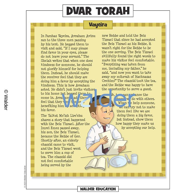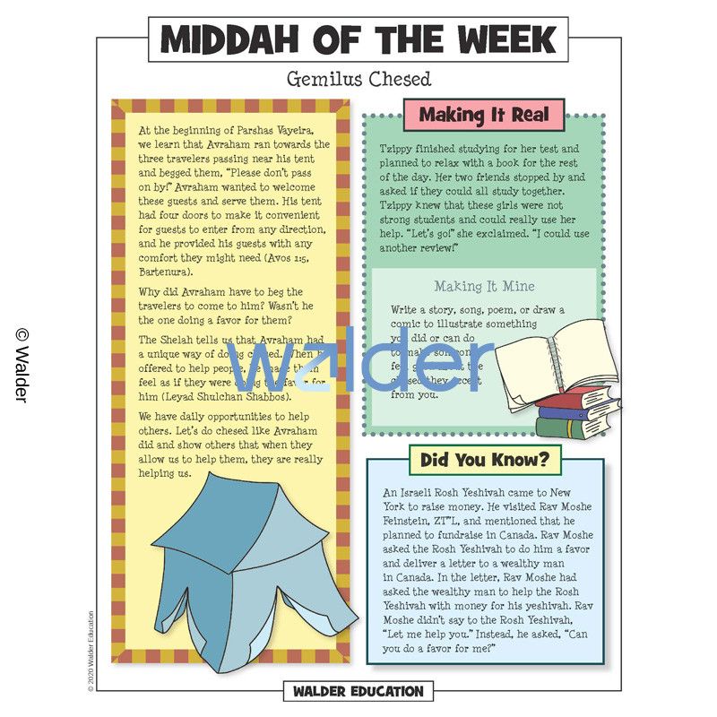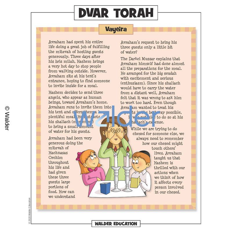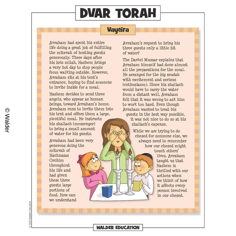 This handout is filled with everything the Shabbos table needs to review the weekly parshah. It contains a summary of the weekly portion, a middah of the week and divrei torah that are sure to engage children of all levels.