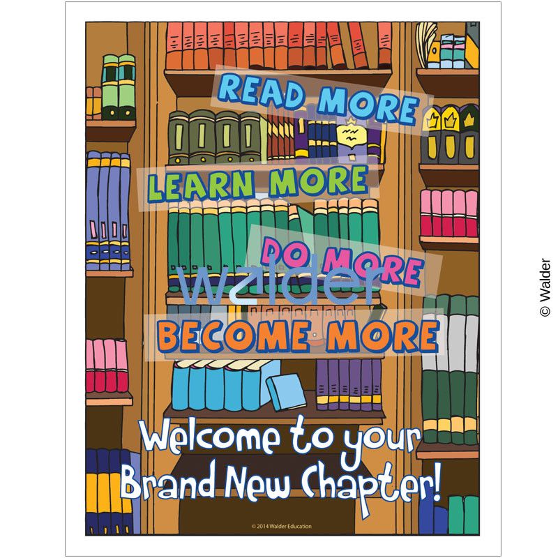 Motivate your students to pursue and obtain beneficial habits and work ethics! This poster inspires students to read more, learn more, do more and become more. Using a library motif, students are encouraged to begin a new chapter in their lives through these worthwhile values.