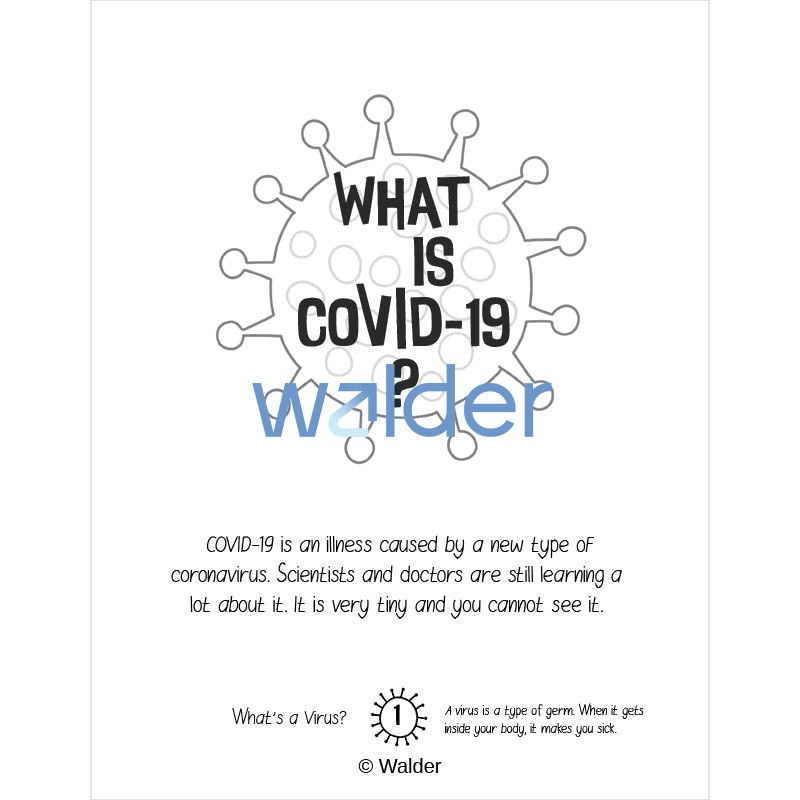 This coloring book gives a simple explanation of the virus, how someone may catch it, its symptoms, and what can be done to prevent its spread.