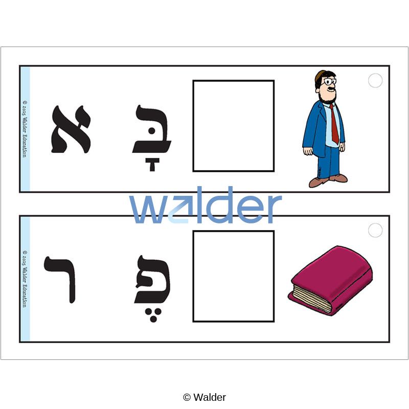 These sentence strips offer children an enjoyable activity that fosters beginning sound recognition as an early keriah skill. Each strip is illustrated with a colorful object and the object name, minus the first letter/nekud. The student will look through the accompanying letter flash cards to pick the beginning letter to spell the word correctly.