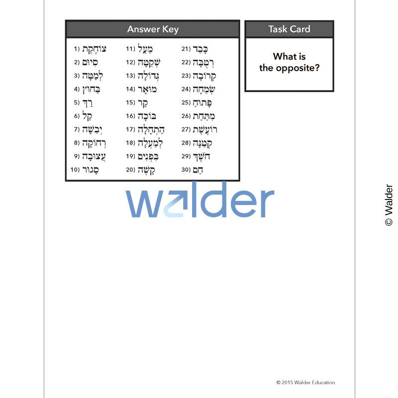 Turn your opposites curriculum into a game with these illustrated game-cards. With the ability to fit with any game board, this versatile tool can make differentiated instruction a breeze. The teacher can assign modified skill review to specific students while giving others the pre-made answer key. All students use the same cards and check their own work, allowing them to control their learning in an enjoyable, fun way. At their turn, students draw a card and complete the task Correct answers move them forward while wrong answers keep them stuck in place. Other possible tasks to use these cards would be say the opposite in English or draw the opposite.