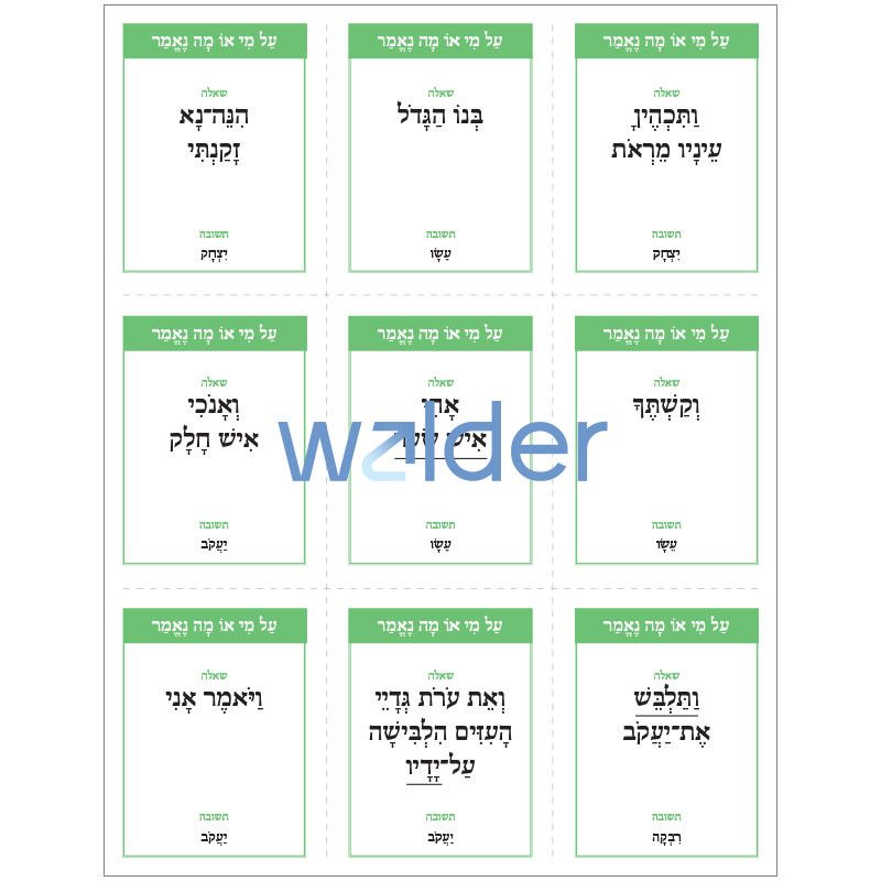 Actively involve your students in reviewing Chumash with these flashcards featuring review questions from Parshas Toldos. Each card includes a description or phrase from the parsha, asks students to identify the person being described or quoted, and provides the answer, enabling students to quiz a partner confidently.