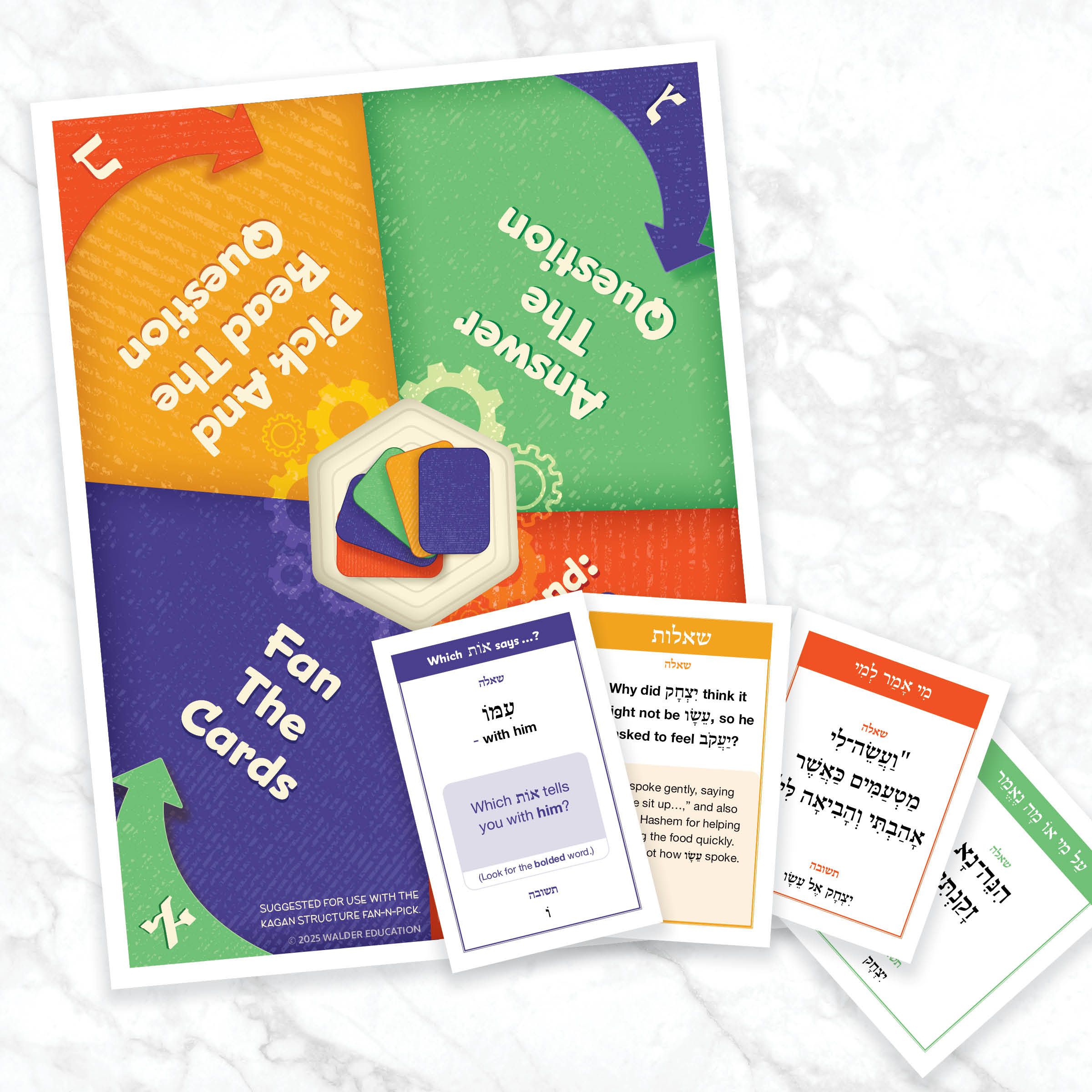 The flashcards may be used independently or with a cooperative learning structure, such as the Kagan Structure Fan-N-Pick, for interactive review. Brief instructions suggesting use with Fan-N-Pick and a mat indicating students’ roles are included.