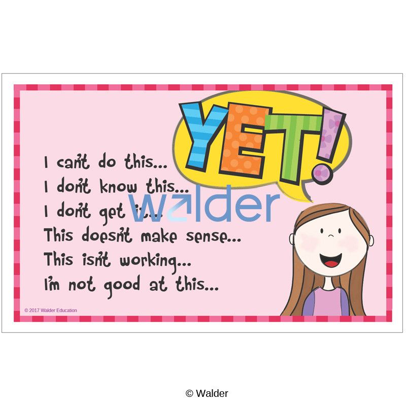 The word yet negates most complaining and tells students that they will eventually master what they attempt if they work hard enough. Girls will be inspired to try as they see this poster decorating the classroom.